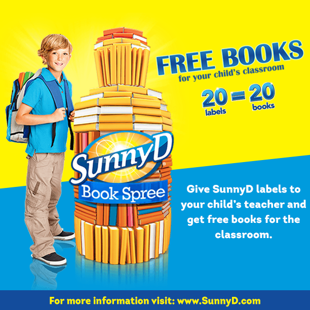 If you’re an avid reader of MommyTeaches and you follow me on all platforms, you know that literacy is HUGE in my household and it’s plays a tremendous role in my classroom. I don’t care how old you are, once you find the right book for you, you’re immersed in it! Why not immerse our children in books at home and with even more at school? This is what the SunnyD Book Spree is about. Remove those SunnyD labels from the products you’re already buying and send them to your child’s teacher for extra books in their classroom! In my mind, a richer library is equivalent to an even richer vocabulary and comprehension abilities! The SunnyD Book Spree has been on a roll since 2009, donating over $6 million in books!