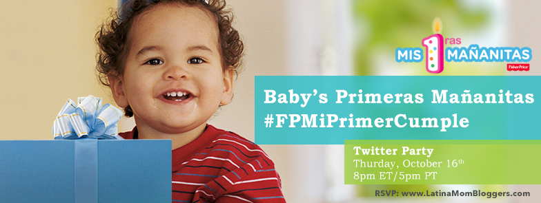 Please join Fisher-Price® and Latina Mom Bloggers on Thursday, October 16th at 8 pm EST/5 pm PST for the Baby’s Primeras Mananitas #FPMiPrimerCumple Twitter Party. We’ll be talking about the culturally relevant and emotional connection that many of us have to “Las Mañanitas”, a song that highlights the love and optimism that a mom feels on her baby’s special day. We’ll also be sharing fun and creative tips to help you plan the ultimate first birthday party for your little one!