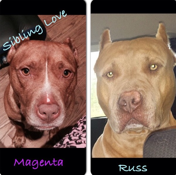 In the five years that Magenta has been with us, I have never felt as if I had to question my judgement to trust her. She shows me her loyalty every day, and the way she cares about my boys allows me to realize I can trust her completely. When one of my boys is upset, she runs to their aid. One time, she even acted as guard dog (though not trained in this way at all) when an intruder tried to come into our home by jumping our fence. Her brother Russ chimed in as well. That day, I saw a different side of Magenta and Russ. I knew that they both were ready to protect their family! Russ arrived at our home when he was about 2 years old and, although it took me a while to trust him since I didn’t have him when he was younger, I now know that he will protect my family as well as Magenta will. He was never judged by us and was gladly accepted as he is Magenta’s biological brother, a Pitbull as well.