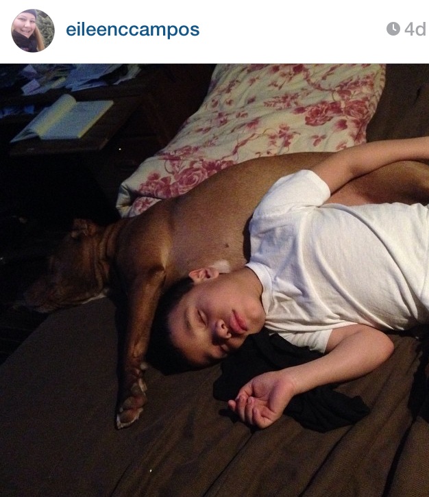 Magenta was raised in a loving household. She will literally cuddle up to one of the boys when they are sleeping as to say, “I am here to protect you!” You can also get a comfortable bed for your dog so they will have a good sleep like Magenta. When she was younger, my youngest son would rub her ears and grab her tail (not in a cruel way) and she would just play along with him. There was never any malice in her demeanor. Even now, one of the boys can run up on her as she’s in a deep sleep and she greets them with a soft nudge like, “Please let me sleep, this old lady needs some rest.” She’s an excellent family pet, always looking out for the boys. It often seems as though she thinks she is one of the kids, running in the backyard to find them and trying to get on the trampoline or jumping in our pool. She is nothing like many describe Pitbulls to be.